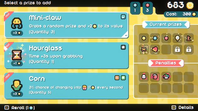 Customize your prizes - Customize your runs by adding or removing prizes to build powerful combos, and upgrade the claw for greater success!