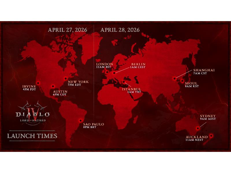 Blizzard Entertainment hat heute eine Reihe von Ankündigungen zu Diablo IV: Lord of Hatred bekanntgegeben, kurz vor der weltweiten Veröffentlichung am 28. April 2026.