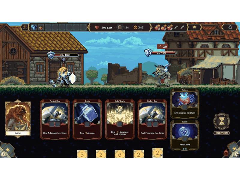 One playable character: Lion Paladin ARIE who uses the d6 dice to deal immense damage or shield himself against incoming attacks.