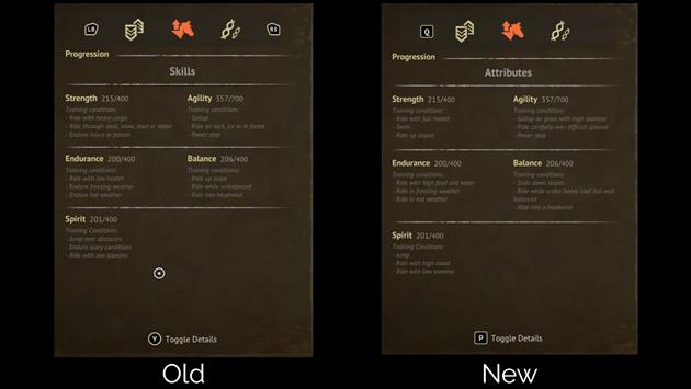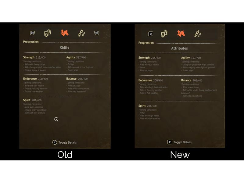 Here you can see the old training system, alongside the new that was just introduced! This feature's been prioritised due to the feedback that the previous system, which was meant to train your horse when it faced hardship, felt too harsh to your horses, so we have changed it to be much kinder.