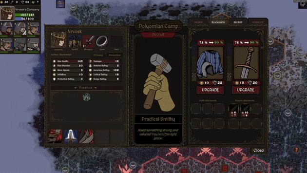 Every choice must be weighed carefully, its outcome will have a direct effect on your campaign. Every playthrough will be different. Is the distant light that shines through the trees a merry band of merchants, keen to share their wares, or a band of thieves, bloodthirsty and opportunistic?… or perhaps something far more sinister. Each scenario is carefully crafted with attention to detail. With Health and sustained injuries carrying over from battle to battle, there are limited opportunities for your company to truly recover. Nrvesk’s journey is a constant balancing act and effort to keep your head above water.