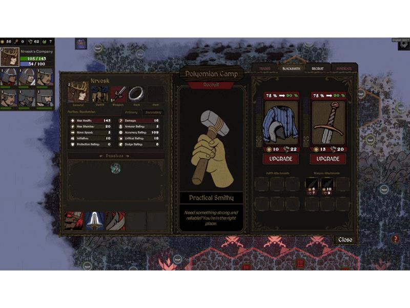 The king is an essential unit: Nrvesk is a competent warrior, but his death means the end of a run.This raises the stakes of every battle, forces you to play with care and more tactically, and encourages various ways to build him.Do you create the ultimate leader, encouraging and supporting your companions from across the battlefield? Or a nigh-impossible-to-kill warrior, who survives on account of his own prowess?