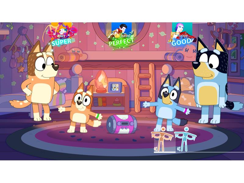 Das Bluey-Gameplay ermöglicht es Spieler/-innen, Bluey, ihre Familie und Freunde beim Tanzen durch ikonische Settings in Blueys Haus und Brisbane zu begleiten und dabei jeden Schritt der fröhlichen Choreografie nachzuahmen. Dieses aufregende Gameplay sorgt für ein unvergessliches Just Dance-Erlebnis, bei dem Tänzer und Bluey-Fans jeden Alters gemeinsam Spaß haben können.