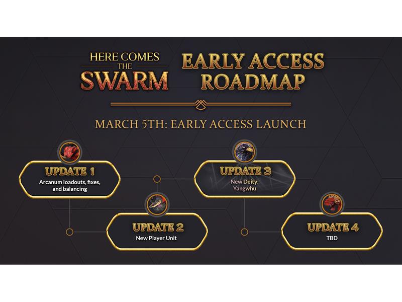 CableHook Games has also revealed the first details of Here Comes The Swarm’s ongoing Early Access development roadmap, with exciting monthly content drops for the first three updates, with more planned.