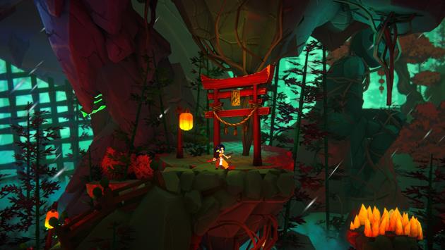 Gameplay revolves around Mako’s staff, which serves as a weapon, a traversal tool and a key to the world’s secrets. The staff is central to every encounter - players chain combos on the ground and in mid-air, launch the staff as a projectile, and pull it back to continue attacking in a single fluid motion. Outside combat, the staff enables gliding, wall-hooking, sliding, and momentum-driven parkour across highly vertical environments. The universe spans over several different biomes - from a medieval Asian-inspired landscape and flooded underground mines to floating bamboo islands and a volatile otherworldly dimension. Enemies operate within a living ecosystem where they fight each other, trigger traps, and react to environmental hazards.