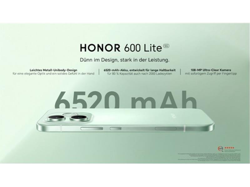 HONOR, weltweit führender Anbieter eines KI-Geräte-Ökosystems, hat die Einführung des HONOR 600 Lite bekannt gegeben. Das elegante Budget-Smartphone markiert einen bedeutenden Schritt in seiner Preisklasse: Es verbindet als erstes Modell in seinem Segment ein hochwertiges Aluminium-Unibody-Gehäuse mit einem branchenweit ersten integrierten Vakuum-Schmiedeverfahren, das laut HONOR eine um 26 % verbesserte Bruchfestigkeit ermöglicht. Damit bringt HONOR fortschrittliche Material- und Fertigungstechnologie in ein Segment, in dem andere Geräte meist noch auf Kunststoff setzen. In Kombination mit einer physischen KI-Kamerataste, einer 108-MP-Ultra-Clear-Kamera und intelligenten KI-Funktionen macht das HONOR 600 Lite moderne Nutzererlebnisse und eine robuste, hochwertige Verarbeitung für mehr Nutzer zugänglich.