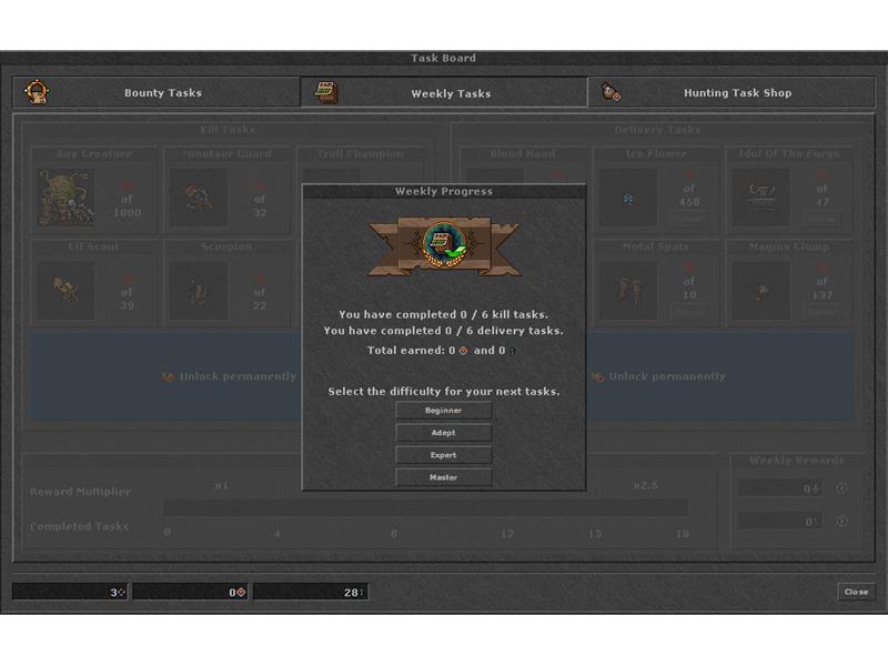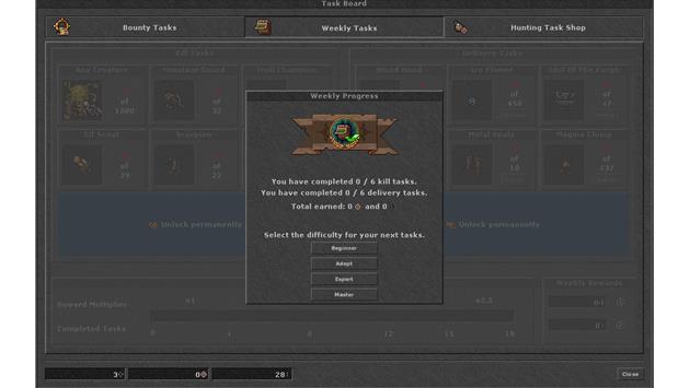 The Hunting Task System has been completely overhauled and now consists of two pillars. In Bounty Tasks, players choose one of three randomly selected creatures at a difficulty of their choice and then hunt it down. In addition, up to 18 different Weekly Tasks add even more challenges and rewards to the game.