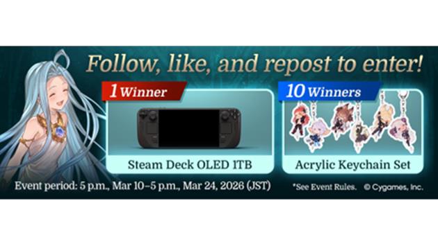 To commemorate Granblue’s launch on Steam, players can enter a giveaway on social media for a chance to win a Steam Deck OLED or Acrylic Keychain Set.