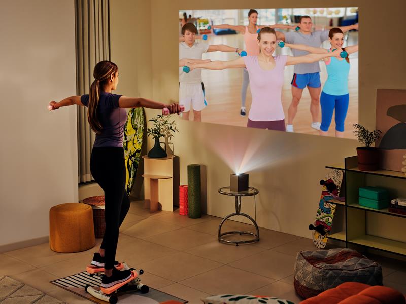 Ein einziger Handgriff reicht, und der CineBeam S zaubert bis zu 100 Zoll große Bilder gestochen scharf an die Wand. Dabei benötigt er dank Ultrakurzdistanz-Technologie nur wenige Zentimeter Abstand und sorgt so für ein platzsparendes Heimkino-Feeling.