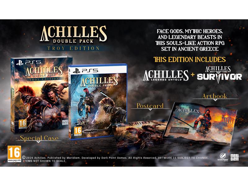 Meridiem is pleased to announce it will publish and distribute a physical edition of Achilles Double Pack - Troy Edition for PlayStation 5 on July 22, 2026. Developed by Dark Point Games, Achilles Double Pack - Troy Edition features the stories of Achilles: Legends Untold and Achilles: Survivor.