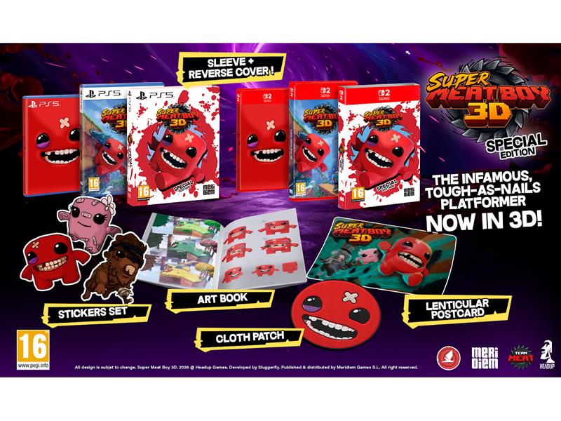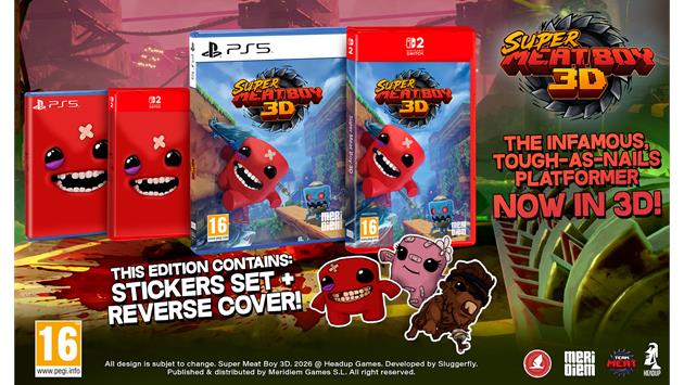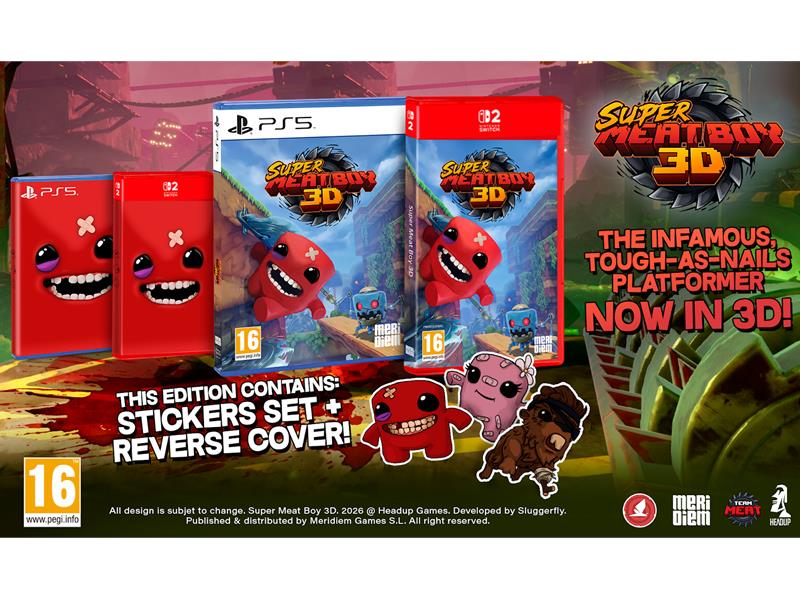 Meridiem is pleased to announce that it will publish two Physical Editions of Super Meat Boy 3D for Nintendo Switch 2 and PlayStation 5 on June 30, 2026. The digital version will be available on March 31, 2026. Developed by Sluggerfly and Team Meat and digitally published by Headup, Super Meat Boy 3D brings back the iconic and challenging platform game, but this time in 3D.
