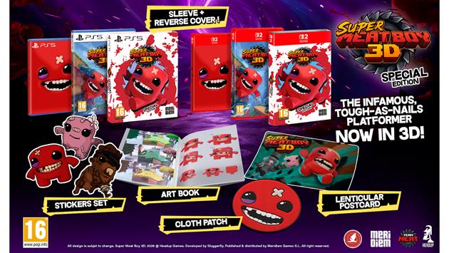 Meridiem is responsible for designing and manufacturing the physical Editions of Super Meat Boy 3D for Nintendo Switch 2 and PlayStation 5. Super Meat Boy 3D - Standard Edition will include a sticker set and a reversible cover, and Super Meat Boy 3D - Special Edition, aside from the sticker set and the reversible cover, a special sleeve, a lenticular postcard, a cloth patch and an artbook.