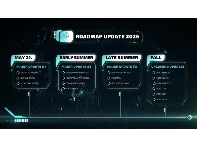 Die Roadmap bietet Ausblick auf die kommenden Updates für den Early Access von Morbid Metal: von Gegner-Updates und Sub-Biomen bis hin zum Aura-Farming und einem neuen freischaltbaren Helden.