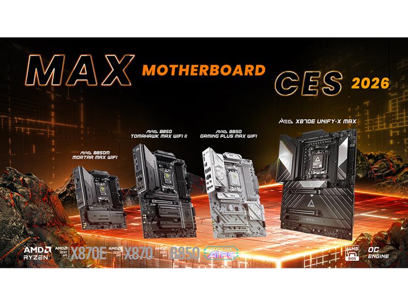 MSI stellt auf der CES seine neuesten Mainboards der AMD MAX-Serie vor, die mit den Chipsätzen X870(E) und B850 eine breite Palette von Leistungsanforderungen abdecken. Jedes MAX-Modell verfügt über eine integrierte OC-Engine, die eine asynchrone BCLK-Steuerung für eine präzise Frequenzabstimmung ermöglicht und in unterstützten Szenarien eine um bis zu 15 % höhere Gaming-Leistung bietet. Aufbauend auf dem EZ-DIY-Ansatz von MSI ermöglicht der integrierte Direct OC Jumper Echtzeit-BCLK-Anpassungen direkt im Betriebssystem, und der neue BCLK Booster bietet eine einfache Ein-Klick-Option für schnelles Übertakten. Um ein noch umfassenderes BIOS-Erlebnis zu unterstützen, verfügen alle MAX-Mainboards außerdem über einen verbesserten 64-MB-BIOS-Chip, der die ROM-Kapazität für aktuelle und zukünftige AMD-Prozessoren erweitert.