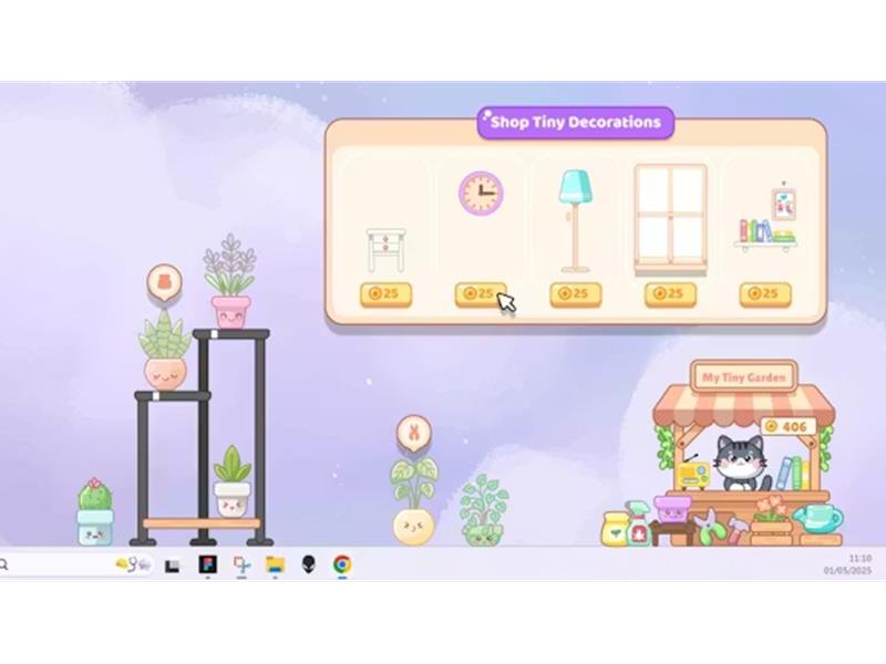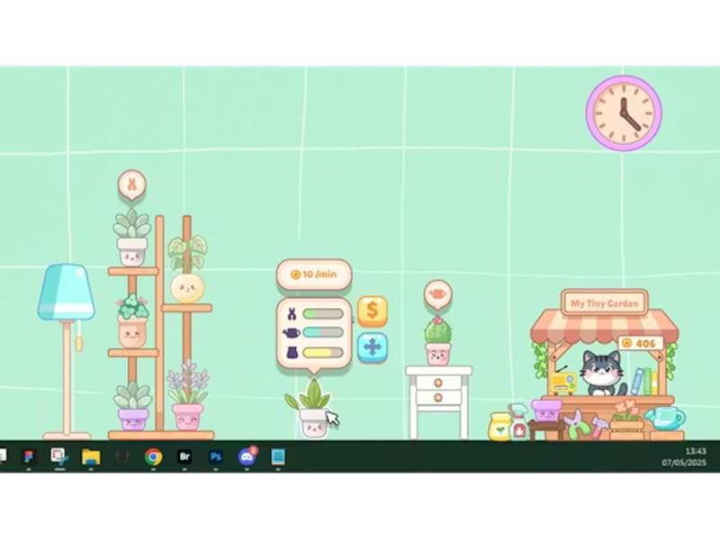 The game rewards attentive care with coins, which you can use to unlock more content and expand your garden. You can freely arrange your plants on your desktop, creating a calm and charming environment that accompanies your work, study, or relaxation. You will actually see your desktop behind while all of this takes place!