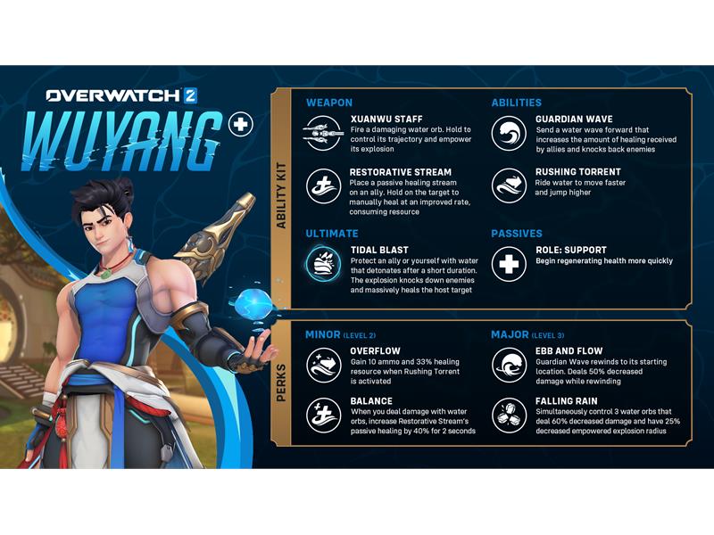 Wuyang ist bereit, euch brandneue Unterstützungsstrategien zu eröffnen! Das Wunderkind vom Wasser-Institut der Wuxing-Universität folgt seinen ganz eigenen Heilungsregeln mit einem Kit, das auf genaues Zielen, Einfallsreichtum und flüssige Bewegungen ausgelegt ist.
