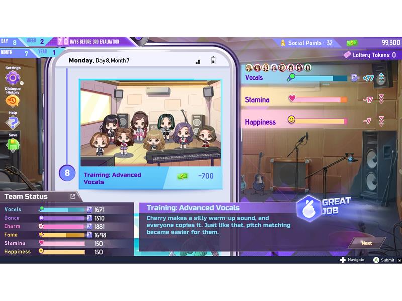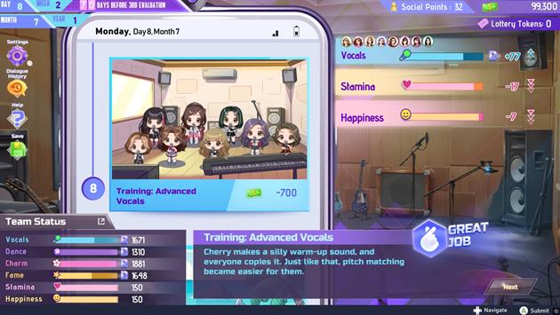 In K-pop Idol Stories: Road to Debut, players step into the shoes of a manager guiding a K-pop group on their journey to stardom. Through strategic talent scouting and interviewing, players must recruit trainees and shape every step of their blossoming career. Careful planning is essential, as managers must delicately balance work, training and downtime into their idol’s schedules to ensure they perform at their best. Pushing idols to work too hard risks burnout and poor performances, while offering extra breaks can increase morale at the risk of increased financial strain.