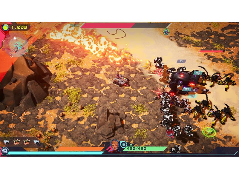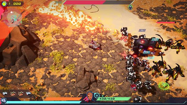 Destroy Legion bases to earn XP and pick up new blocks to buff your Tech, drifting into battle as the opening character Mikela as you attempt to survive the sandswept dunes of Dust Bowl.