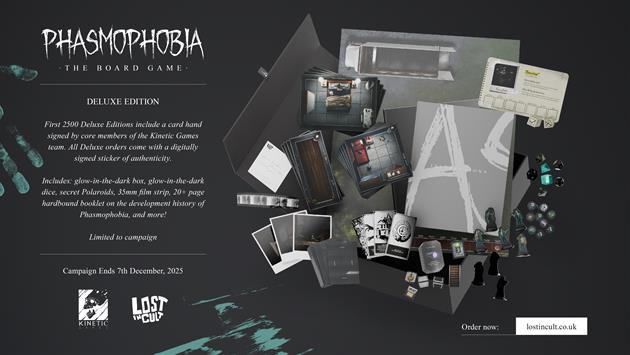 Phasmophobia: The Board Game Deluxe Edition is available to pre-order until campaign end on 7 December 2025. A Signed Deluxe edition, limited to 2500 copies, is also available, and is signed by members of the Kinetic Games team.