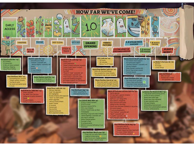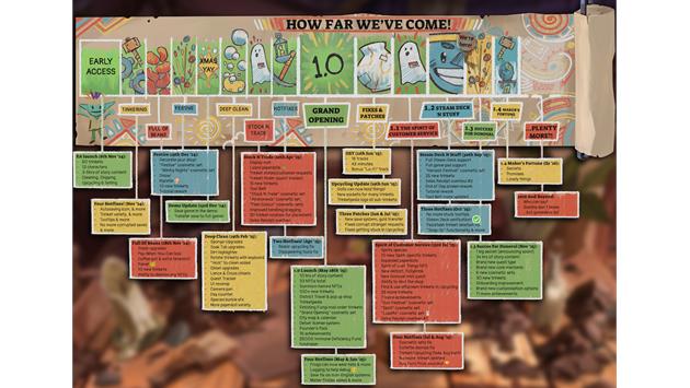 The team couldn't resist taking a look at all the hard work & features they've put into the game in that short time - and created this lovely "retrospective roadmap" that shows just how far the game has come: