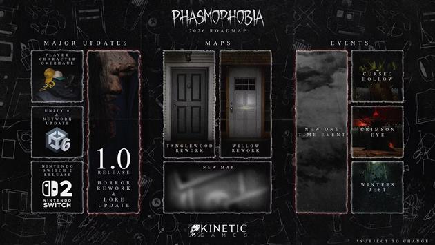 Today, Kinetic Games has unveiled Phasmophobia’s 2026 roadmap, revealing some spine-tingling announcements; including the game’s highly anticipated 1.0 launch alongside a bone-chilling lore update. 2026 is set to be a big year as ghost hunters can also look forward to the player character overhaul update, Nintendo Switch 2 release, terrifying map reworks, the return of fan-favourite seasonal events, and more.