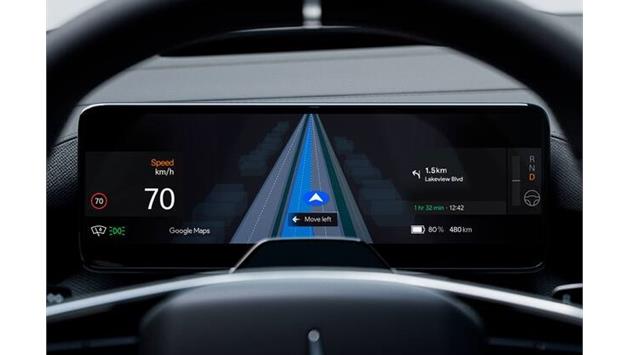 Polestar integriert als erstes Unternehmen die Live-Spurführung von Google Maps - ein neues Navigationserlebnis auf dem Fahrerdisplay im Polestar 4