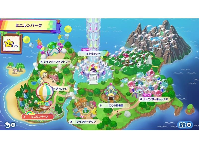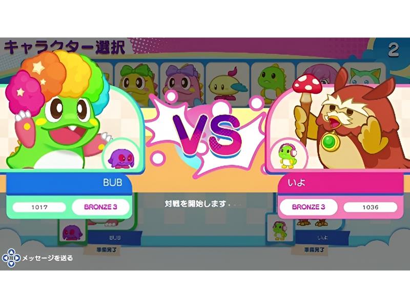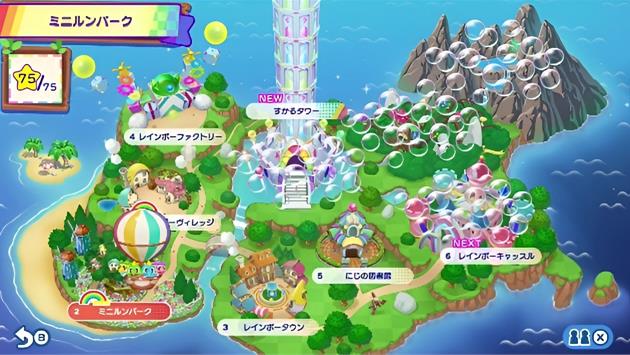 Set on ‘Rainbow Island’, transformed into a bubble-filled world by a wizard’s curse, this is an action-puzzle game in which the beloved bubble dragons travel across the island and embark on adventures with their friends, notably the endless-stage ‘Scal Tower’ and the ‘Puzzle Bobble vs. Invaders’ collaboration.
