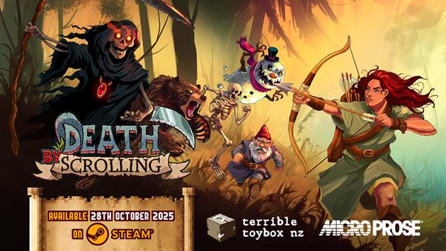 MicroProse and Terrible Toybox NZ are excited to announce that Death by Scrolling will officially launch on October 28, 2025 on Steam. Coming soon on Xbox, Playstation and Switch.