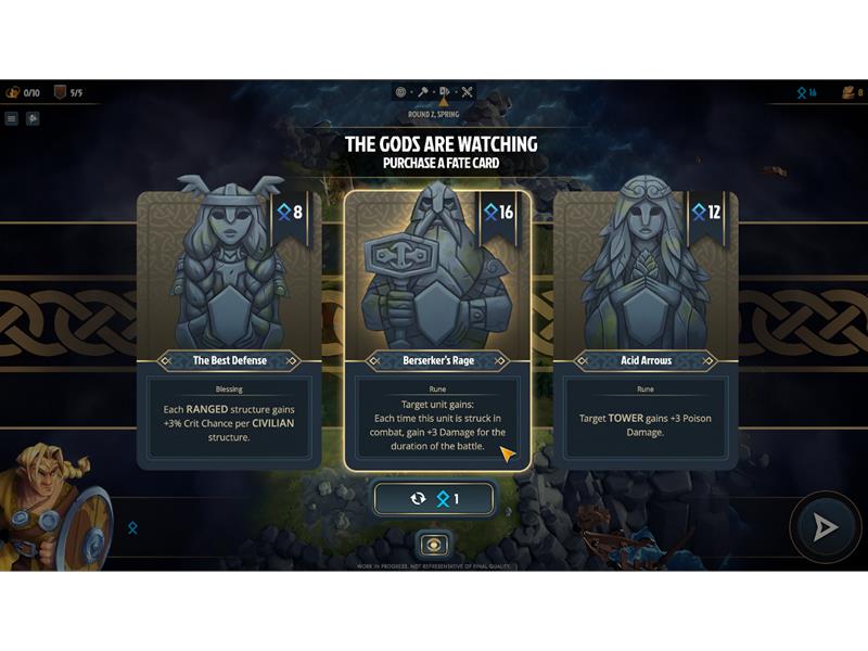 Northgard Battlegrounds kombiniert die rasanten Mechaniken von Auto-Battlern mit den Basisbau-Systemen von Northgard. Zu Beginn eines Durchlaufs wählen Spieler einen Clan mit eigener strategischer Ausrichtung. In jeder Runde erweitern sie ihre Siedlung, indem sie Gebäude platzieren, Ressourcen verwalten, ihre Kriegerschar stärken und mächtige Synergien freischalten. Krowns finanzieren die Entwicklung des Dorfes, während eingesetztes Wissen es ermöglicht, sich nordischen Göttern zu verschreiben und deren Fähigkeiten auf dem Schlachtfeld einzusetzen.