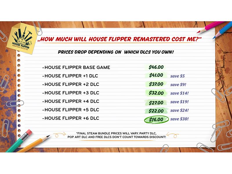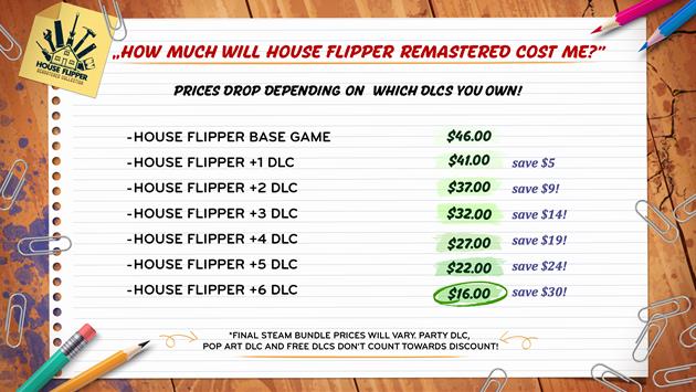 Frozen Way has also shared an infographic explaining the pricing details for the House Flipper Remastered Collection. Good news for Flippers - the price depends on which and how many DLCs you already own!