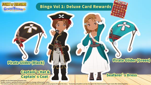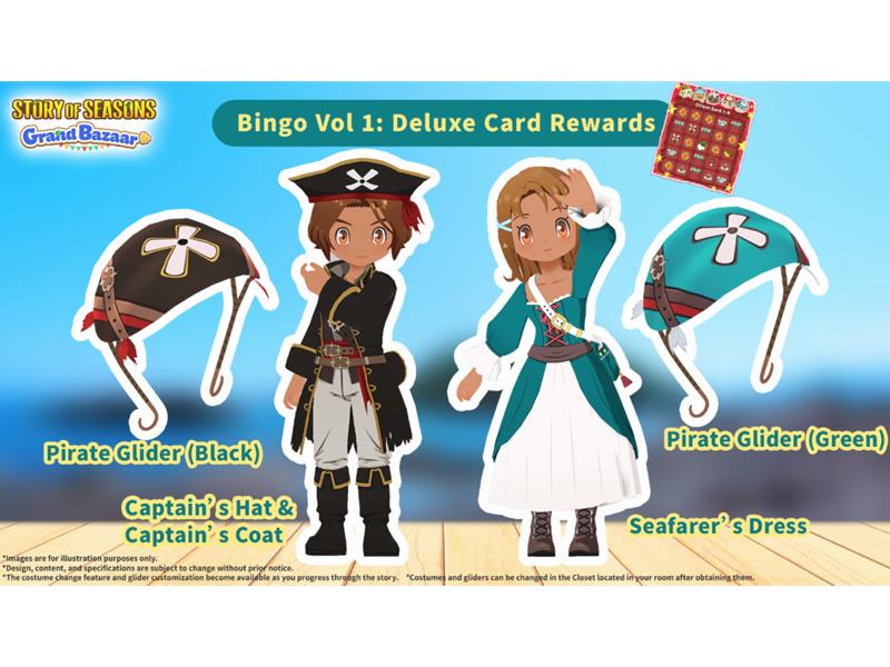 The new Happy Bingo feature can be accessed once farmers reach “City Bazaar Rank” in Zephyr Town. After triggering an event scene on their farm, the feature unlocks, granting players their first set of bingo cards to complete. Each spot on the card features an everyday activity like fishing or petting animals. Players complete these activities to fill spots on their card until they’ve completed a Happy Bingo! Players then turn in completed cards at the Nature Sprites’ stall, Happy Shoppe, on bazaar days to earn a variety of useful items. There is even a Deluxe Bingo card that offers greater rewards, including unique outfits and gliders, with more planned for release in the future.