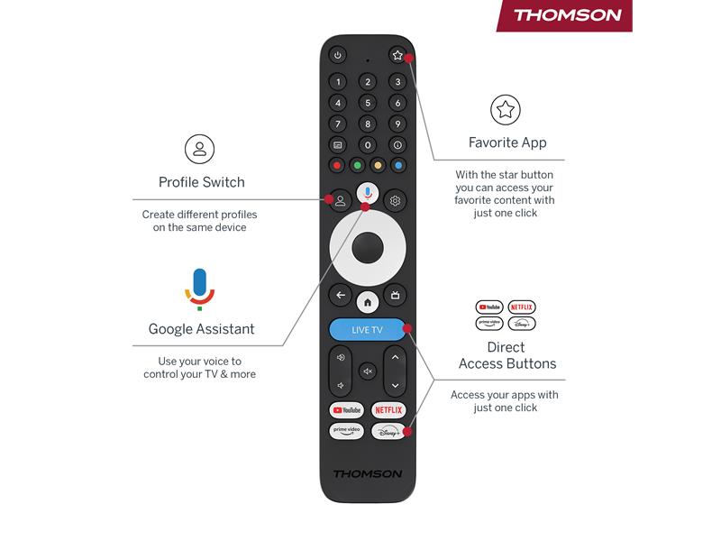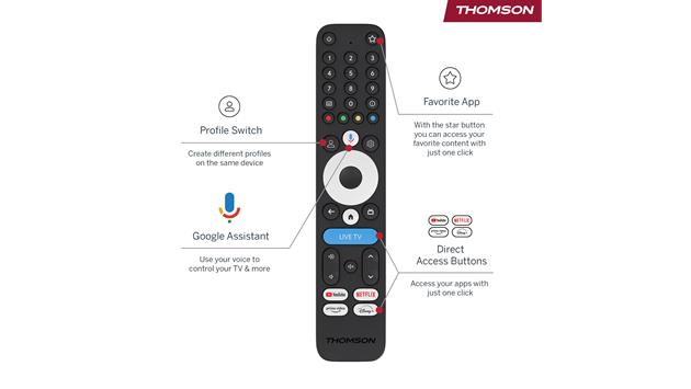 SPRACHSTEUERUNG UND HINTERGRUNDBELEUCHTETE FERNBEDIENUNG: Verwenden Sie Google Assistant für die freihändige Suche und greifen Sie über spezielle Shortcut-Tasten sofort auf Ihre Lieblings-Apps zu.
