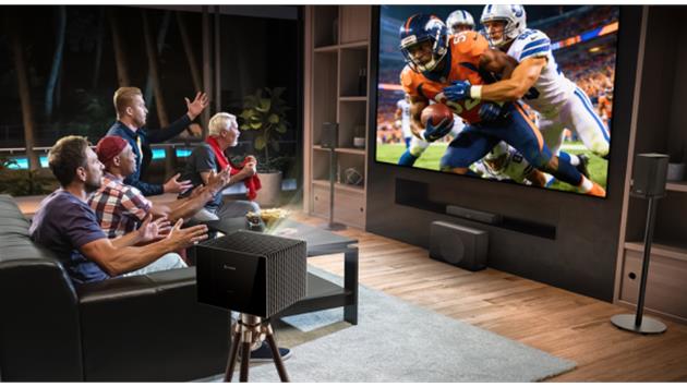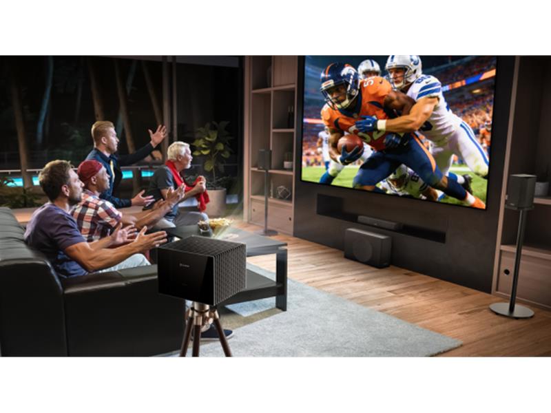 Der Valerion StreamMaster Plus 2 verwandelt den gesamten Raum in ein echtes Stadionerlebnis. Möglich macht das seine RGB-Triple-Laser-Lichtquelle, die ein 4K-Bild mit bis zu 300 Zoll Bilddiagonale projizieren kann.