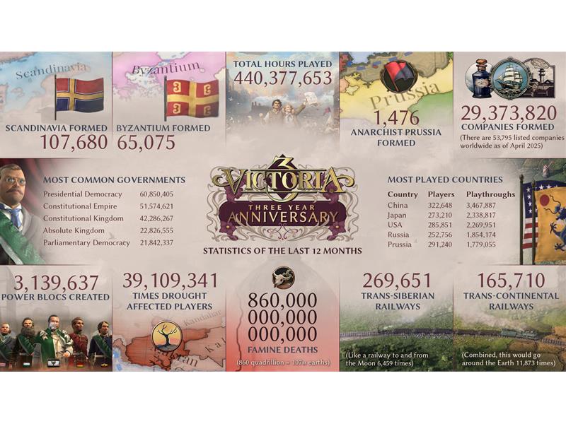 To mark the birthday, Paradox has published an infographic highlighting some interesting player data from the last twelve months.