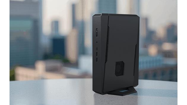 Jeder NUC 15 Performance verfügt über einen vielseitigen Ständer, der eine vertikale oder horizontale Aufstellung ermöglicht. Darüber hinaus hat das Gehäuse kein Logo, sodass ein individuelles Firmenlogo angebracht werden kann.
