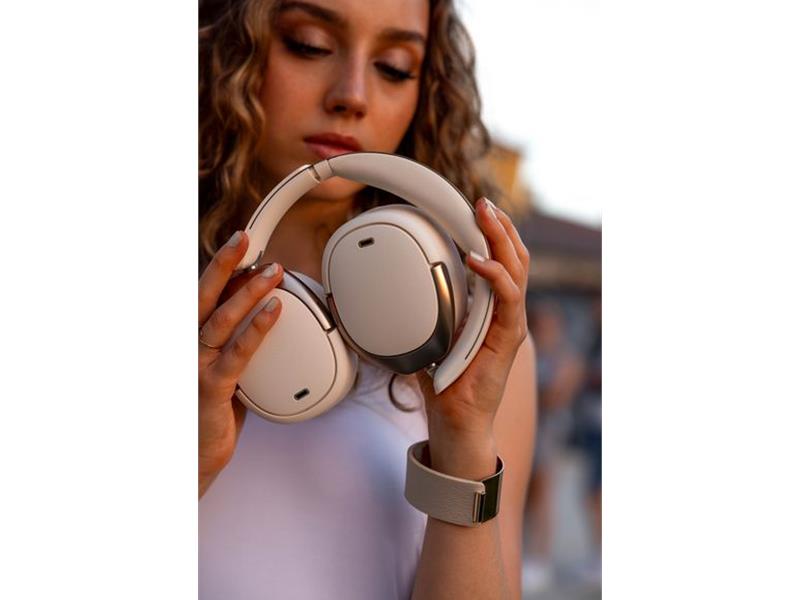 Für fokussiertes Hören reduziert die hybride aktive Geräuschunterdrückung Umgebungsgeräusche um bis zu -49 dB. Vier Mikrofone analysieren Störquellen in Echtzeit und blenden sie per optimiertem Algorithmus effektiv aus. Die Intensität ist in acht Stufen regelbar; zusätzlich stehen Transparenz- und Windgeräuschmodus zur Verfügung.