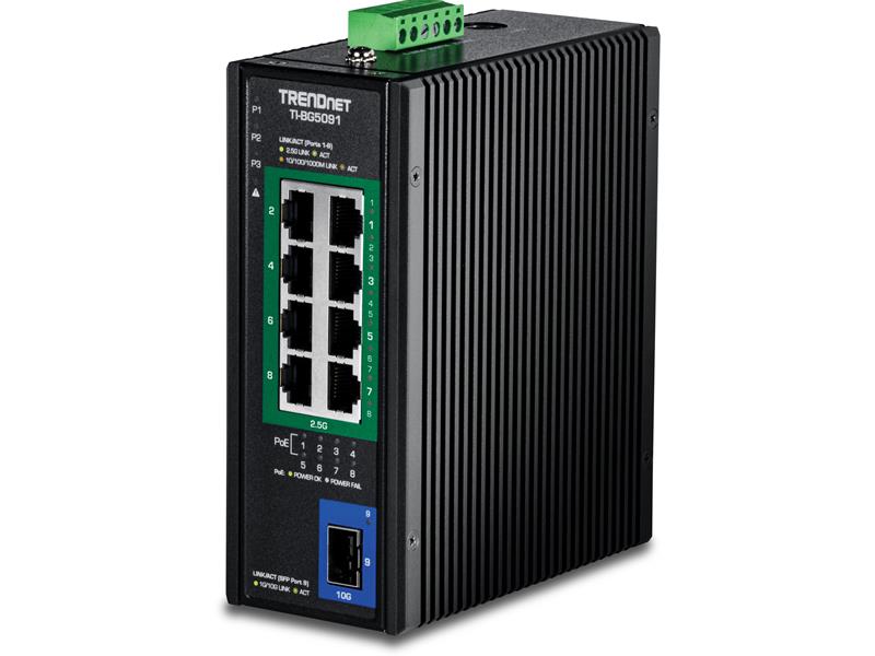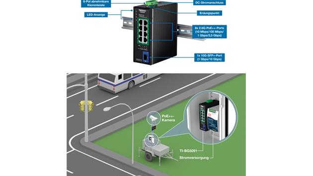 TRENDnet´s industrieller 2.5G-DIN-Rail-Switch TI-BG5091 mit 480W PoE-Budget kombiniert 10G-Konnektivität mit industrietauglicher Zuverlässigkeit und robuster PoE++-Technologie