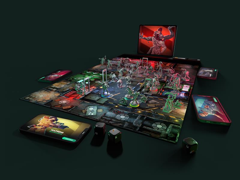 Hoxfall entfaltet sich ohne Regelbücher oder Leerlaufzeiten, da das Teburu-System die Spielsteuerung übernimmt. Durch die digitale App und die physischen Smart-Miniaturen fühlt sich die überrannte Militärbasis lebendig an, denn das ist sie tatsächlich. Das Mutagen lernt während des Spiels dazu und breitet sich unkontrolliert in der gesamten Anlage aus, während die Geschichte mit oder ohne Eingreifen der Spieler voranschreitet. Das Überleben steht im Mittelpunkt, sodass die Spannung niemals nachlässt.