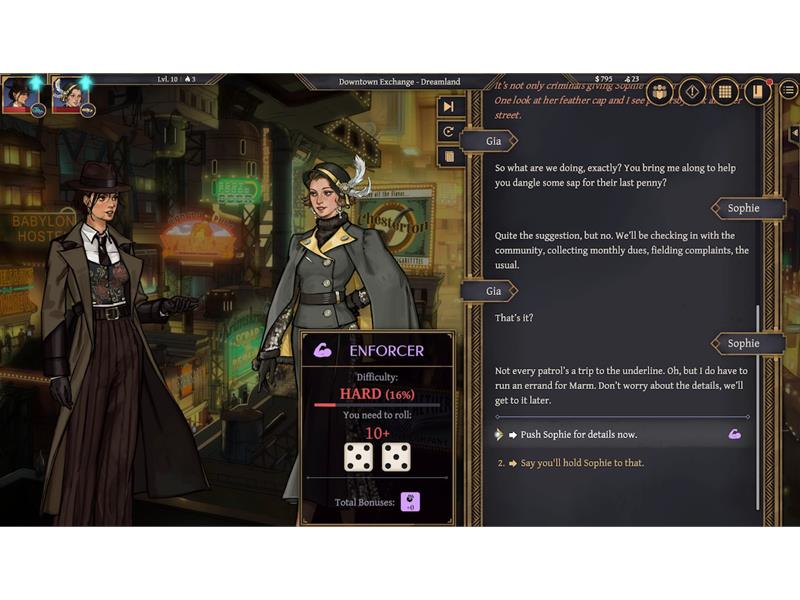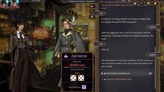• Grow your Talents: Level up your Hustle, Smarts, and Brass abilities to improve your chances in combat and social situations. But no matter how good you are, you’re always a dice roll away from success or failure.
