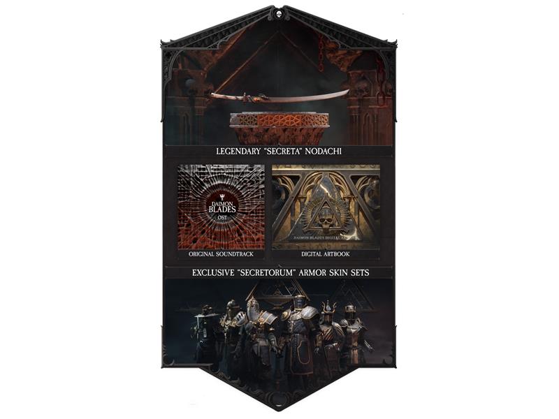 Wer Daimon Blades während des Early Access erwirbt, erhält zudem ein exklusives Secreta Secretorum-Bundle. Dieses enthält exklusive Waffen- und Rüstungsskins, die eine Hommage an den Originaltitel E.Y.E: Divine Cybermancy von Streumon darstellen, sowie ein digitales Artbook (PDF-Format) und den Original-Soundtrack (in MP3- und verlustfreien Formaten). Während das Artbook und der OST nach der Veröffentlichung des Spiels in Version 1.0 zum Kauf erhältlich sein werden, sind beide Skins nur während des Early Access verfügbar.